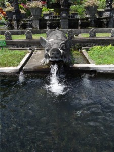 Weiter geht’s mit einer durchschnittlichen Geschwindigkeit von 30km/h durch wunderschöne Landschaft in der sich Reisfelder mit Bambus- und Kokospalmenwäldern abwechseln, auf engen kurvigen Straßen bis an die südlichere Ostküste nach Ujung mit seinem Wasserpalast, der Vorbild für den Nachbau des wesentlich jüngeren und doch so viel schöneren Thirtagangga war. Ujung wurde hässlich wieder aufgebaut und gefällt uns nicht besonders. Dann treten wir ziemlich müde den Heimweg an.