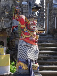 Am nächsten Tag sind wir mit unserem kleinen Äffchen in den Monkey Forest. Wider Erwarten war das Gelände ziemlich beeindruckend, nicht so sehr der putzigen und frechen Tierchen wegen, von denen wir ja bekannterweise selber eins haben, sondern der Vegetation, Brücken, Skulpturen und Tempel wegen.