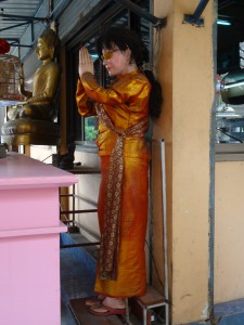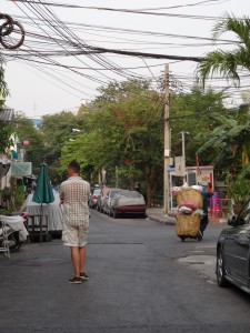 In Bangkok angekommen, erwischen wir mal wieder einen Taxifahrer, der sich überhaupt nicht in seiner Stadt auskennt und sich ständig per Funk den Weg von Kollegen beschreiben lässt. Dazu muss man wissen, dass wir ihm einen Umgebungsplan des Hotels in die Hand gedrückt haben, aus dem (in thailändischer Sprache) eine genaue Wegbeschreibung hervorgeht. Nach fünf Rückfragen und mit unserer Hilfe findet er dann aber doch den Weg, ohne große Umwege gefahren zu sein.