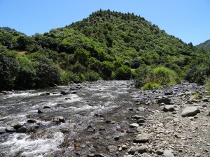 Weiter geht’s über den kurvigen ‘Devil’s Ellbow’ zu einem der schönsten Plätze, an denen wir bis dahin übernachtet haben, die Waikare River Mouth Campsite. Nach 13 Kilometer kurviger Schotterpiste erreichen wir einen idyllischen Platz eingebettet in einen Fluss und steilen Hügeln, die zum Meer abschotten und auf denen Kühe, Schafe und wilde Ziegen rumkraxeln. Überhaupt sind dort viele Tiere in nächster Umgebung. Bellbirds und Hasen und im Wasser natürlich Fische…
