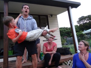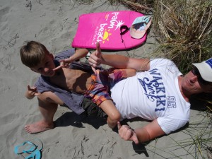 • Alles super. Wir fühlen uns schon wie alte Camperhasen und icke mach die Truckerbraut?. Viele Grüße vom Waihi Beach. Xavi springt gerade mit seinem Bodyboard in die Wellen und ich brate Fisch, den wir gestern gefangen haben. Alles Liebe und viele Grüße an die Families!!!