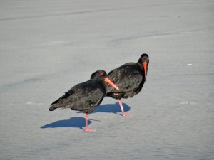 zum Farewell Spit, dem nördlichsten Zipfel der Südinsel, den wir auf einer 9 km langen und menschenleeren Tour erwandern; Xavi schwimmend und laufend immer vorne weg,