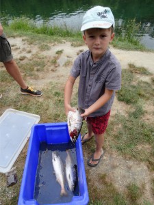Einer der Ausflüge wird ein besonderes Highlight für Xavi. Wir fahren zu einer Lachsfarm, wo er angeln darf und uns auch direkt das Abendbrot in Form von drei stattlichen Exemplaren fängt. Super stolz kann er tagelang von nichts anderem erzählen.