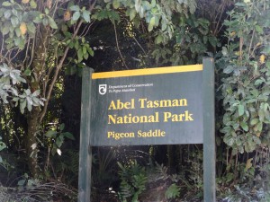 in den Abel Tasman National Park, wo wir wandern und baden und durch den Rainforest zu den Wainui Falls, wo wir im kristallklaren Fluss baden, bis uns die Sandflies auffressen. Alles bei fantastischen Wetter.